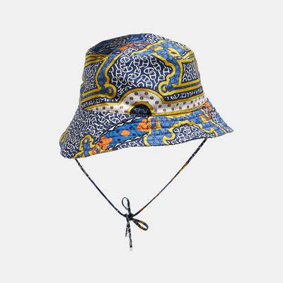 This silk Hermès hat features the house’s equestrian inspired Mors et Gourmettes print in vivid hues. A lightweight yet statement making piece for sunny escapes or stylish city strolls.