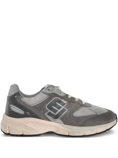 medium grey front lace-up fastening padded ankle chunky rubber sole panelled design
