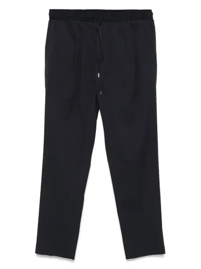 navy blue elasticated drawstring waistband two diagonal pockets to the sides two rear welt pockets