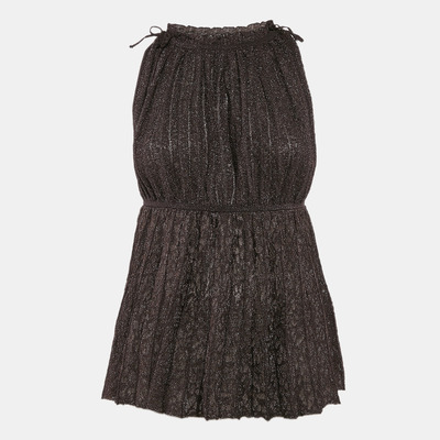 Elevate your wardrobe with this M Missoni masterpiece. Crafted from luxurious lurex knit, this sleeveless top showcases an intricate metallic pattern, exuding elegance and fashion forward style. This exclusive piece reflects M Missonis commitment to superior craftsmanship, making it a must have for those seeking an extra touch of sophistication. Perfect for any chic evening event, it promises to turn heads effortlessly.