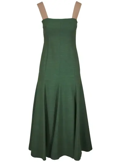 moss green concealed rear fastening wide shoulder straps A-line flared skirt