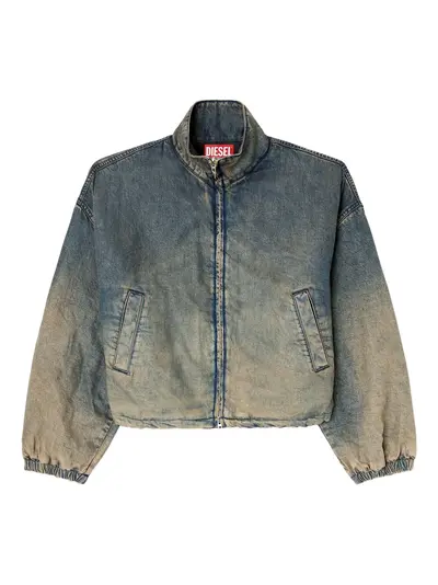 indigo blue front zip fastening two side welt pockets drop shoulder elasticated cuffs
