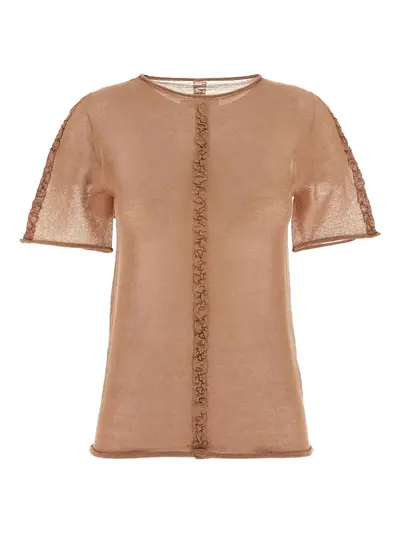 blush beige ruffled detailing rolled trim crew neck short sleeves