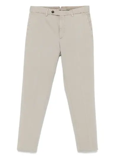 ash grey front button and zip fastening belt loops two side slash pockets two rear welt pockets