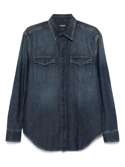 indigo blue front press-stud fastening two chest flap pockets long sleeves press-stud fastening cuffs