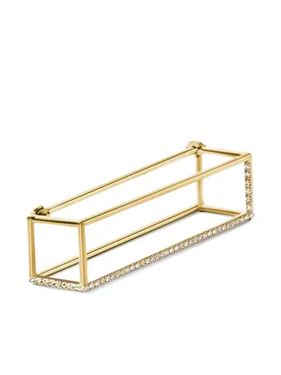 18kt yellow gold pavé-set diamonds rectangular prism design polished finish for pierced ears This is a single earring. Normal everyday use and external agents may reduce the lustre of gemstones and gold surfaces. To maintain, use specific, non-abrasive products specially meant for cleaning jewellery.