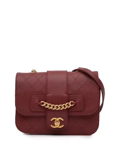 sheepskin leather body flat leather and chain shoulder strap flap with CC turn lock closure exterior back slip pocket interior zip pocket red Serial Number: 25087982 This item has no inclusions. Condition: GOOD. This previously owned and used item is in good condition with minimal signs of use. This may include fading of material or plating and scratches. Please refer to the photos on this product page for a detailed view of the item, including any damages declared.