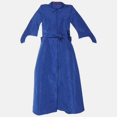 Ch Carolina Herrera Carolina Herrera Royal Blue Taffeta Pocketed Flared Shirt Dress M 1138024 (голубой, lpn29702756)