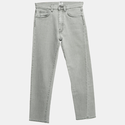 Indulge in the understated elegance of these grey denim jeans crafted with meticulous attention to detail. A reliable zip closure complements its timeless five pocket design, catering to both form and functionality. These jeans are perfect for casual outings, offering a sophisticated twist on everyday wear. Elevate your wardrobe with this chic addition, embodying Totemes signature refinement.