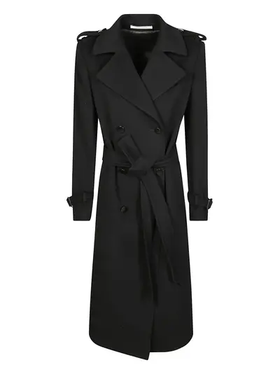 black double-breasted button fastening two side welt pockets belted cuffs central rear vent