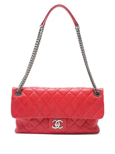 circa 2014-2015 red calf leather diamond quilting leather and chain-link shoulder strap front flap closure signature interlocking CC turn-lock fastening partitioned compartment internal zip-fastening pockets internal patch pockets signature Rue Cambon address embroidery internal logo patch silver-tone hardware Serial Number: 20844729 Condition: GOOD. This previously owned and used item is in good condition with minimal signs of use. This may include fading of material or plating and scratches.