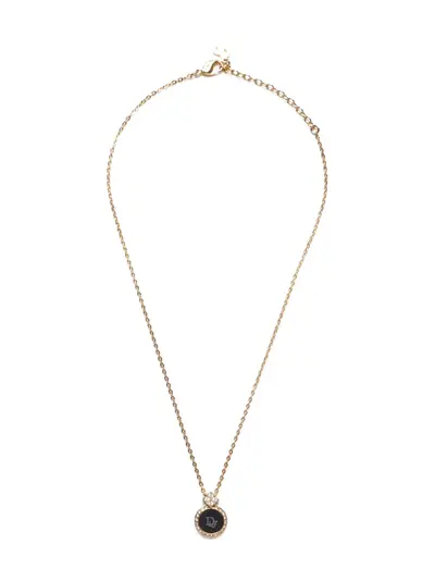 circa 1990-2015 gold-tone gold plated polished finish rhinestone embellishment cable-link chain circular pendant engraved logo signature CD logo pendant lobster-claw fastening adjustable fit Condition: GOOD. This previously owned and used item is in good condition with minimal signs of use. This may include fading of material or plating and scratches.