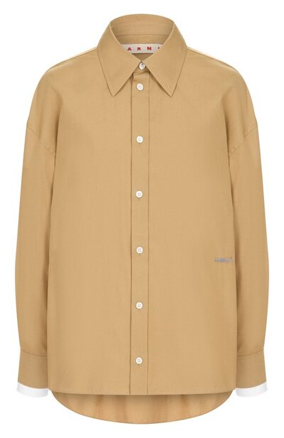 Рубашку со слегка удлиненной спинкой выполнили из поплина на основе органического хлопка. Модель с двойными манжетами украсили вручную вышивкой Marni Symbol спереди.