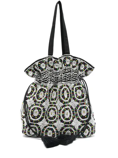 black side drawstring fastening two top handles bead embellishment This piece comes complete with a protective dust bag.