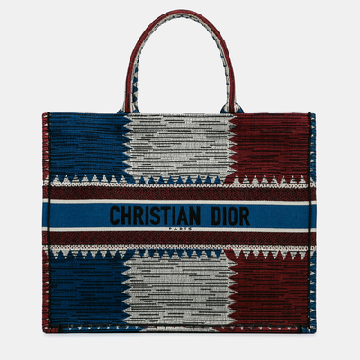 The Dior Large French Flag Book Tote makes a striking statement with its bold tricolor design and structured form. Spacious and standout, it effortlessly merges artistic flair with everyday function. An eye catching piece with timeless appeal.