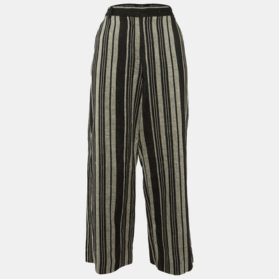 Weekend Max Mara Black/Grey Striped Linen Trousers M 1139541 (чёрный, lpn29708598)