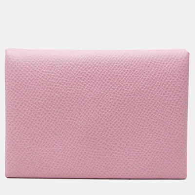 Hermes Pink Epsom Leather Calvi Duo Card Case 1139623 (розовый, lpn29708643)