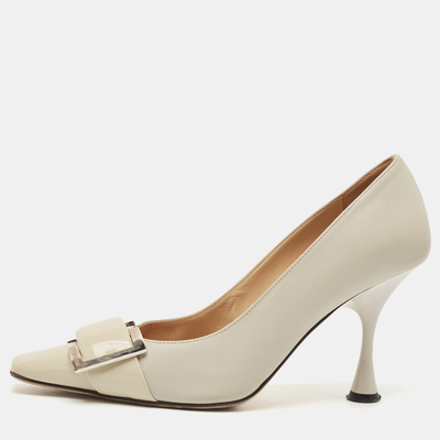 Sergio Rossi Grey Patent and Leather Décolleté Square Toe Pumps Size 37 1140692 (lpn29708790)