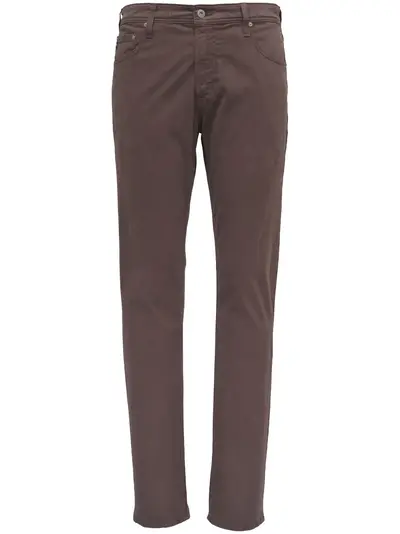 chocolate brown concealed fly and button fastening classic five pockets slim cut