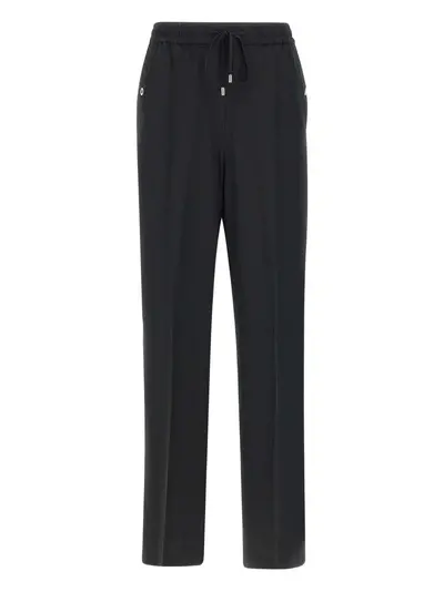 black elasticated drawstring waistband two side slash pockets rear welt pocket pressed crease