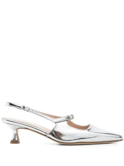 silver-tone buckle-fastening slingback strap pointed toe branded leather insole low heel
