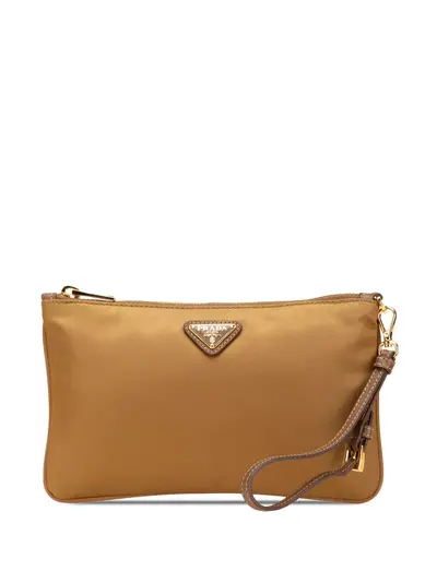 nylon body detachable flat leather wrist strap top zip closure interior zip pocket brown This item has no inclusions. Condition: EXCELLENT. This previously owned item is in near-perfect condition with no signs of damage or use. Please refer to the photos on this product page for a detailed view of the item, including any damages declared.