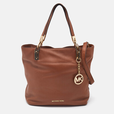 The brown leather Brooke tote from MICHAEL Michael Kors is a versatile everyday carryall. With its clean lines, roomy interior, and gold tone hardware, it combines practicality with understated polish—ideal for daily errands or office chic.