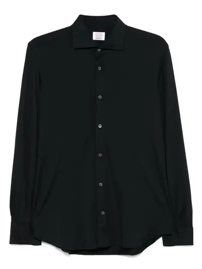 black front button fastening buttoned-cuff sleeves dart detailing cutaway collar