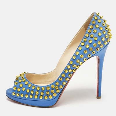 Christian Louboutin Blue Leather Yolanda Peep Toe Pumps Size 38 1142087 (голубой, lpn29755770)