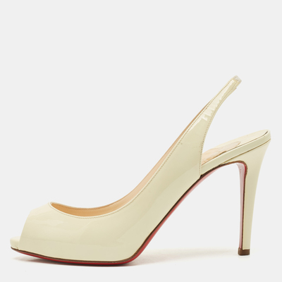 Christian Louboutin Light Cream Patent Leather Flo Slingback Sandals Size 37.5 1144157 (lpn29756236)