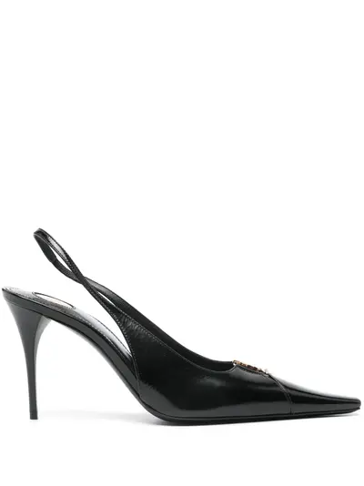 black elasticated slingback strap high stiletto heel pointed toe leather sole