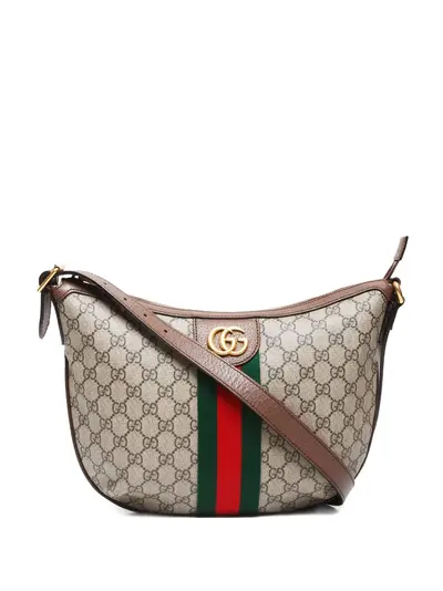 circa 2020-2025 beige GG Supreme canvas leather trim signature Double G logo signature Web detailing adjustable shoulder strap top zip fastening main compartment internal zip-fastening pocket full lining gold-tone hardware Condition: GOOD. This previously owned and used item is in good condition with minimal signs of use. This may include fading of material or plating and scratches.