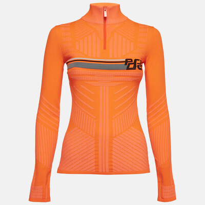 Prada Neon Orange Patterned Jersey High Neck Technical Top M 1142863 (оранжевый, lpn29761923)