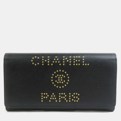 Chanel Black Leather Long Wallet 1144031 (чёрный, lpn29762103)