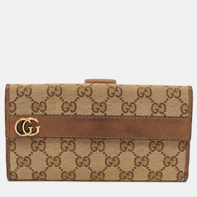 Embodying elegance, this luxurious wallet blends Guccis signature GG canvas with supple leather for a timeless appeal. The multiple compartments cater to sophisticated organization, while the iconic Double G logo serves as a mark of distinction.