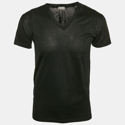 Dior Homme Black Printed Jersey V-Neck T-Shirt S 1142410 (чёрный, lpn29766395)