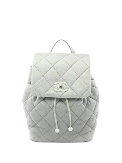 circa 2021 light grey caviar leather single flat top handle two leather and chain-link shoulder straps foldover top signature interlocking CC turn-lock fastening top drawstring fastening main compartment internal logo patch silver-tone hardware Serial Number: XE22KTNH This item comes with an original authenticity microchip. Condition: EXCELLENT. This previously owned item is in near-perfect condition with no signs of damage or use.