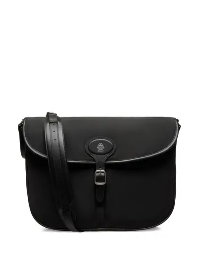 black front buckle fastening foldover top detachable shoulder strap internal zip-fastening pocket