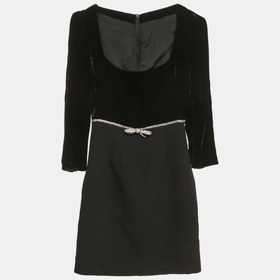Miu Miu Black Velvet and Wool Crystal Bow Detail Mini Dress XS 1144395 (чёрный, lpn29773414)