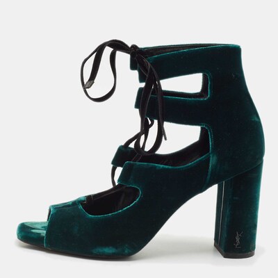 Yves Saint Laurent Saint Laurent Dark Green Velvet Loulou Open Toe Lace Up Block Heel Pumps Size 37.5 1145376 (зелёный, lpn29773855)