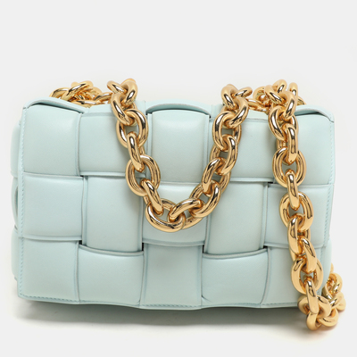 Bottega Veneta Blue Padded Intrecciato Leather Chain Cassette Shoulder Bag 1145779 (голубой, lpn29774127)