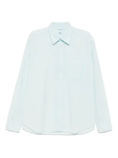 Tiffany blue front button fastening chest patch pocket buttoned cuffs curved hem