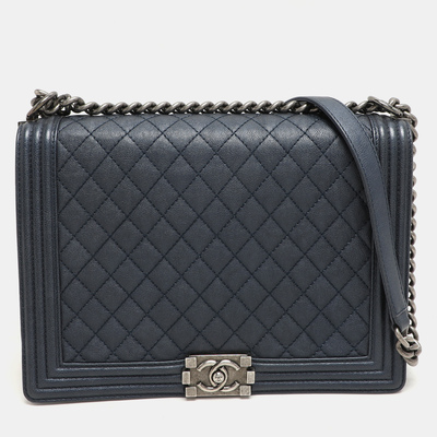 Chanel Blue Quilted Leather Large Boy Flap Bag 1145685 (голубой, lpn29783161)