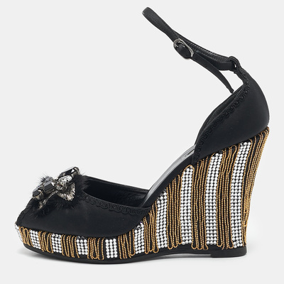 Le Silla Black Satin Embellished Ankle Strap Sandals Size 36 1145696 (чёрный, lpn29783165)