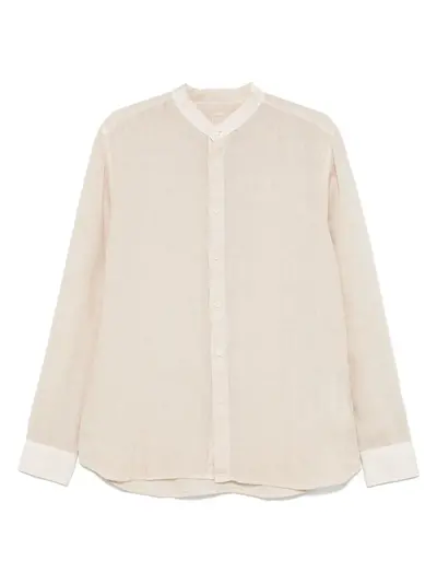 sand beige front button fastening buttoned cuffs band collar curved hem
