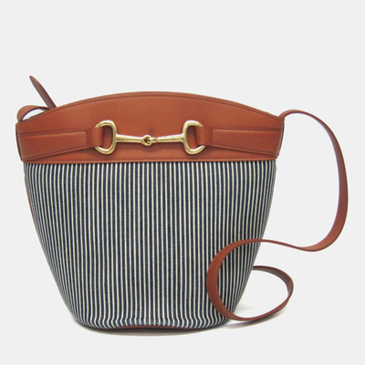Celine Brown, Navy Canvas and Leather Bucket Bag 1146281 (коричневый, lpn29783447)