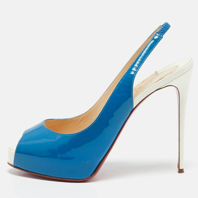 Christian Louboutin Blue/White Patent Leather Private Number Sandals Size 37.5 1146338 (голубой, lpn29783475)