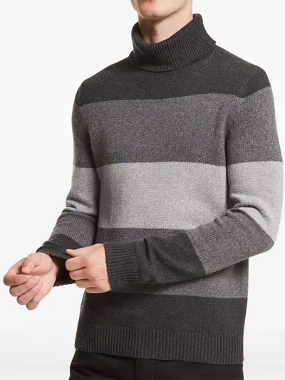 charcoal grey horizontal stripe pattern long sleeves ribbed trim straight hem