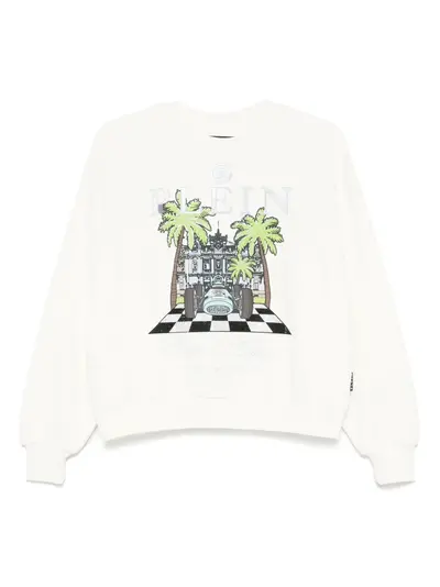 white ribbed cuffs and hem logo print to the front crystal embellishment