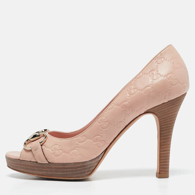 Gucci Pink Guccissima Leather Horsebit Peep Toe Pumps Size 38.5 1146635 (розовый, lpn29806247)